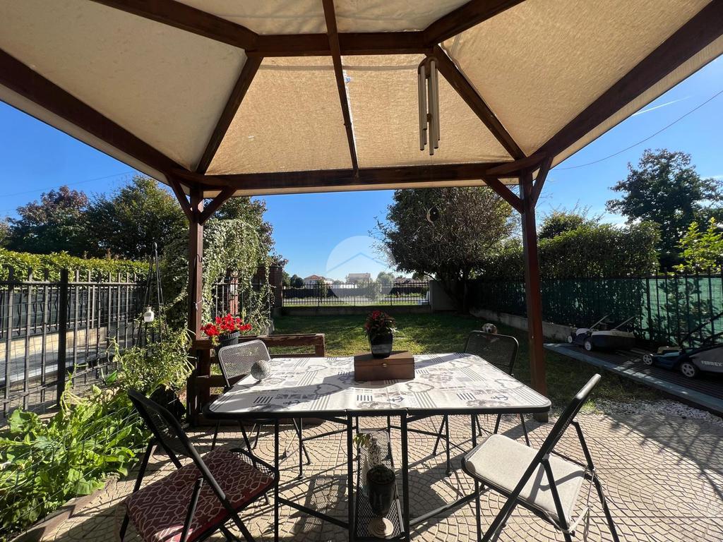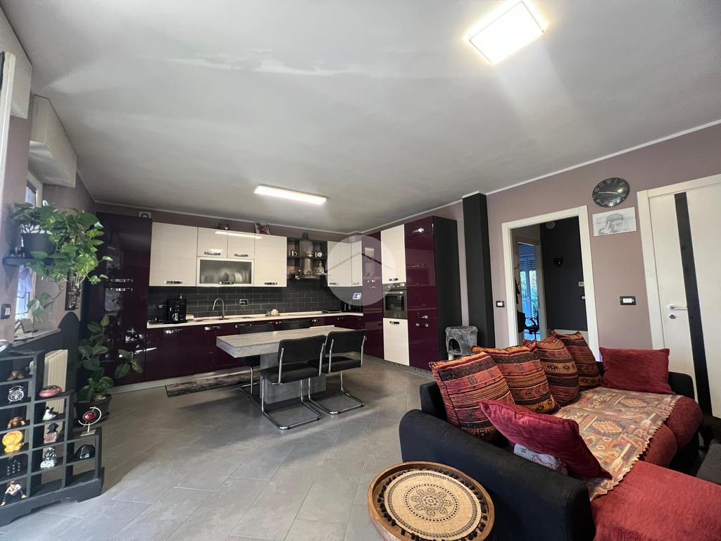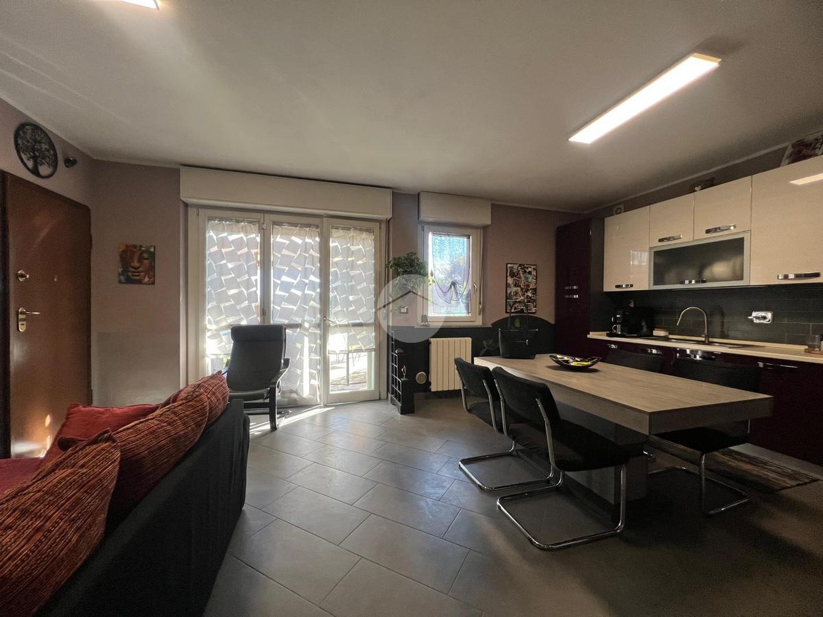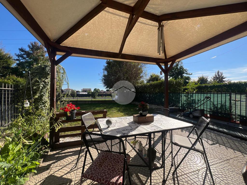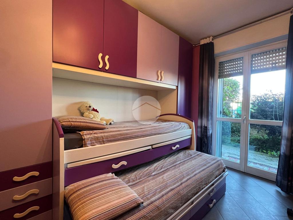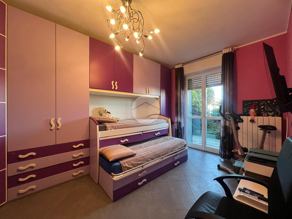 DESCRIZIONE E PARTICOLARITA': L'appartamento si distingue per la comoda e spaziosa zona giorno, con living e cucina a vista. Da questo ambiente si può accedere al portico e al giardino privato di circa 80 mq con esposizione a sud. Il disimpegno conduce nella zona notte composta da : camera da letto matrimoniale e cameretta. Entrambi gli ambienti permettono di accedere al giardino (retro). Il bagno è con la vasca. Al piano seminterrato, la scala, conduce alla taverna, le cui dimensioni la rendono un ambiente versatile: ideale come zona hobby, studio, palestra o area relax. Il box auto di 14 mq è incluso nel prezzo.